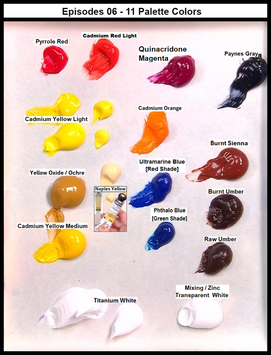 The color palette above is for Episodes 1 through 5. The color palette at the right is for Episodes 6 through 11.