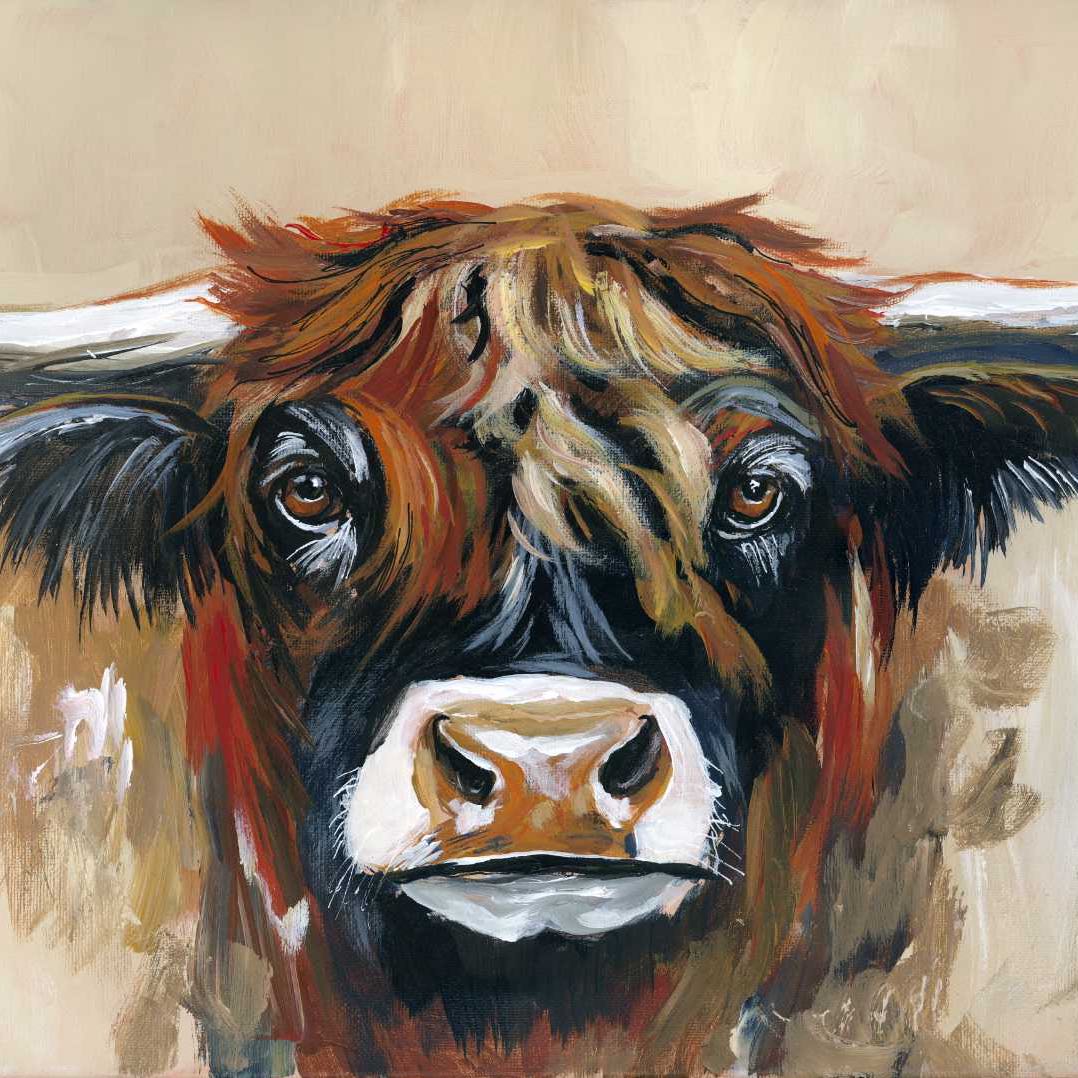 Unleash your inner artist with this captivating Texas Longhorn portrait! The bold brushwork, dramatic eyes, and striking horns create a powerful, lively image. Discover the thrill of painting western wildlife and bring the spirit of the ranch right into your home. Try painting it today!