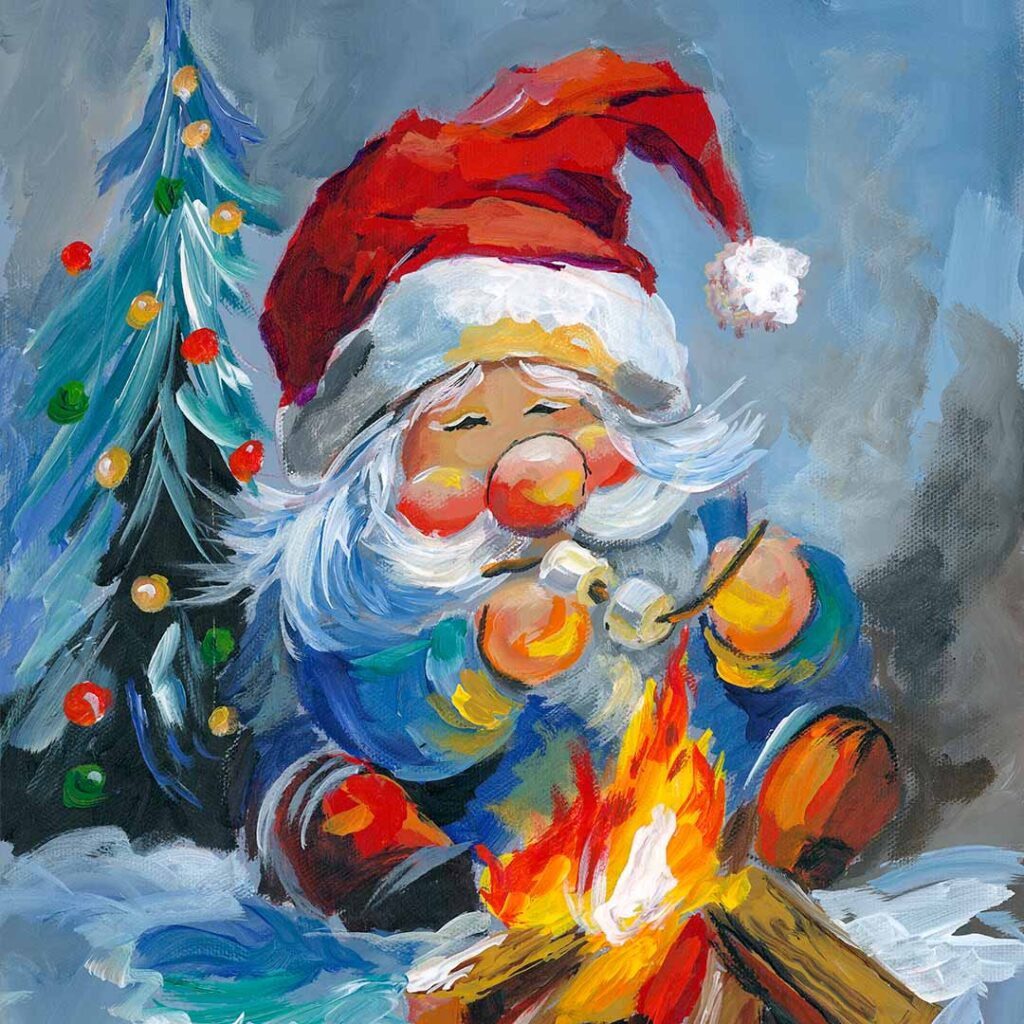 Ginger painted this lesson during a live YouTube show on October 21, 2024, “Santa's Cozy Campfire the Day After Christmas”, a wonderful lesson on painting a fun little painting.